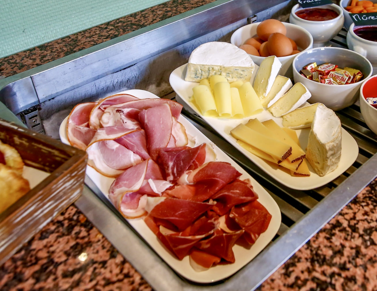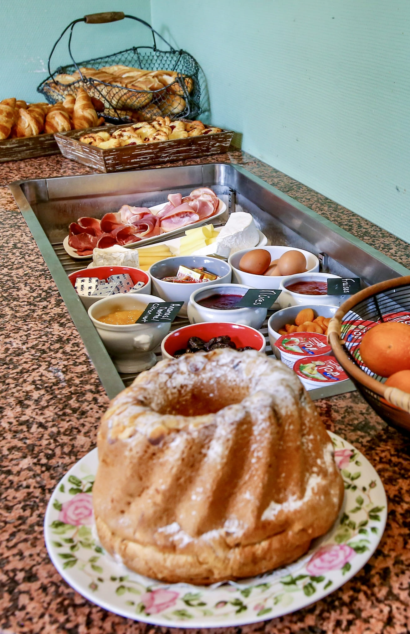 Commencez votre journée en dégustant des produits savoureux et variés ! Servi sous forme de buffet dans une salle lumineuse avec vue sur la rivière Ill, notre petit-déjeuner vous aidera à démarrer la journée du bon pied. En été, vous pouvez vous installer en terrasse pour profiter de la fraîcheur du matin dans un cadre verdoyant. Les produits que nous sélectionnons sont frais, de qualité et issus de commerces locaux : fromages, charcuteries régionales, viennoiseries, confitures artisanales, fruits de saison, jus et boissons chaudes… Le petit-déjeuner est proposé à 11,50 € par adulte et 8,50 € pour les enfants de moins de 12 ans.